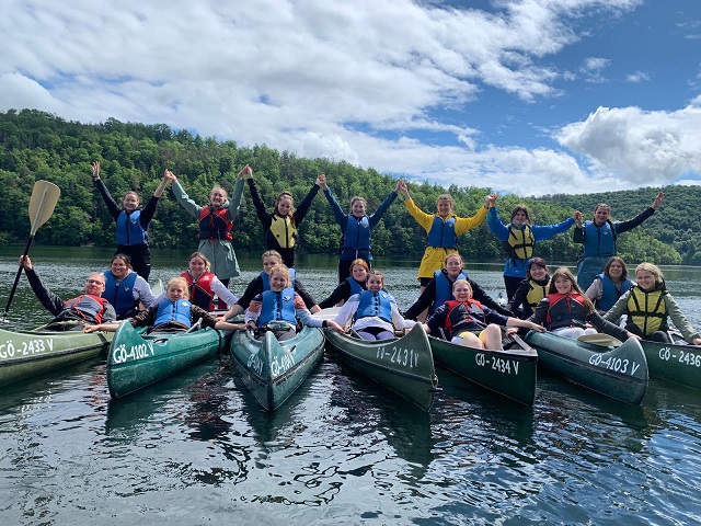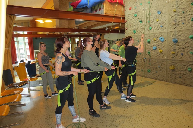 Endlich! Mit einem Jahr Verzögerung konnten die FSP 1 Klassen doch noch ihre erlebnispädagogische Klassenfahrt durchführen. Gemeinsam ging es für 3 Tage an den Edersee ins Sport- und Erlebniscamp der hessischen Sportjugend. Im Vordergrund standen Spiel, Spaß und das gemeinsame Erlebnis. Und so gab es viele Gelegenheiten, die eigenen Stärken kennenzulernen, Grenzen zu spüren und zu überwinden und die gemeinsame Stärke in der Gemeinschaft zu erfahren beim Kanufahren, Bogenschießen, Klettern und dem abschließenden großen Team-Challenge-Spiel, dass durch das aktive Mittun aller erfolgreich gemeistert werden konnte. Mit vielen kleinen und großen Ideen für die spätere berufliche Praxis und jeder Menge schöner Erinnerungen kehrten alle wohlbehalten nach Hause zurück.