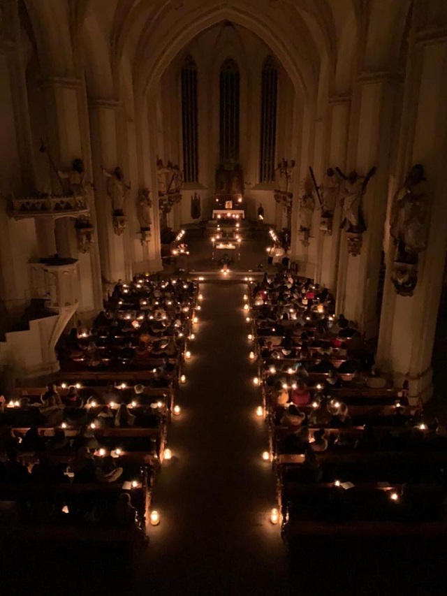 Belohnt wurden diese Anstrengungen mit einem spirituellen und frohmachenden Gottesdienst bei Kerzenschein in der sonst völlig dunklen Kirche. Für die meisten von uns war es ein neues und bereicherndes Erlebnis. Beim anschließenden gemeinsamen Frühstück mit allen Gottesdienstbesucher*innen im Pfarrheim konnten wir uns für den folgenden Schultag stärken und uns in Gesprächen mit Schüler*innen und Lehrer*innen anderer Duderstädter Schulen austauschen. Dieser besondere Tagesbeginn wird uns allen sicher noch lange in guter Erinnerung bleiben.