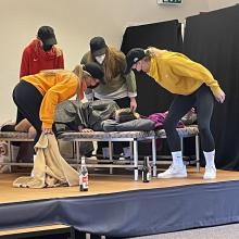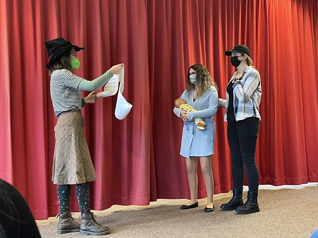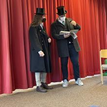 Simsalabims - jetzt kommen die Grimms! So lautete die Ankuendigung eines witzigen Theaterstücks des Wahlpflichtkurses Ästhetische Bildung. Mit viel Spass an der Arbeit schrieben die SUS ein eigenes Drehbuch und versetzten Grimms Märchen in die heutige Zeit. So trafen sich Schneewittchen, Rapunzel und die 7 Zwerge auf einer Party, nichtsahnend, was ihnen dort bevorstehen würde. Eine interessante Idee wurde mit viel Kreativität und Spielfreude umgesetzt!