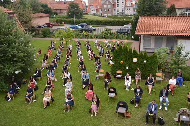 Los ging’s – wie immer – mit einem Dankgottesdienst der Absolventinnen und Absolventen, der in diesem Jahr und dem Motto: „Ende gut, alles offen! Im Vertrauen auf Gott und sich selbst den Weg in die Zukunft gehen.“ gefeiert wurde. Kaplan Matthias Rejnowski erinnerte in seiner Predigt an die zahlreichen Herausforderungen, vor die die jungen Menschen in den vergangenen Monaten der Pandemie gestellt waren und die sie mit der Erfahrung von gegenseitiger Unterstützung und Zuspruch – auch durch die Familien und Lehrerinnen und Lehrer- erfolgreich gemeistert haben. Er verwies auf die Worte Gottes an den Propheten Josua: "Sei mutig und stark!“ und seine (Gottes) Zusage, mit seinem Segen die jungen Menschen auch in Zukunft zu begleiten.